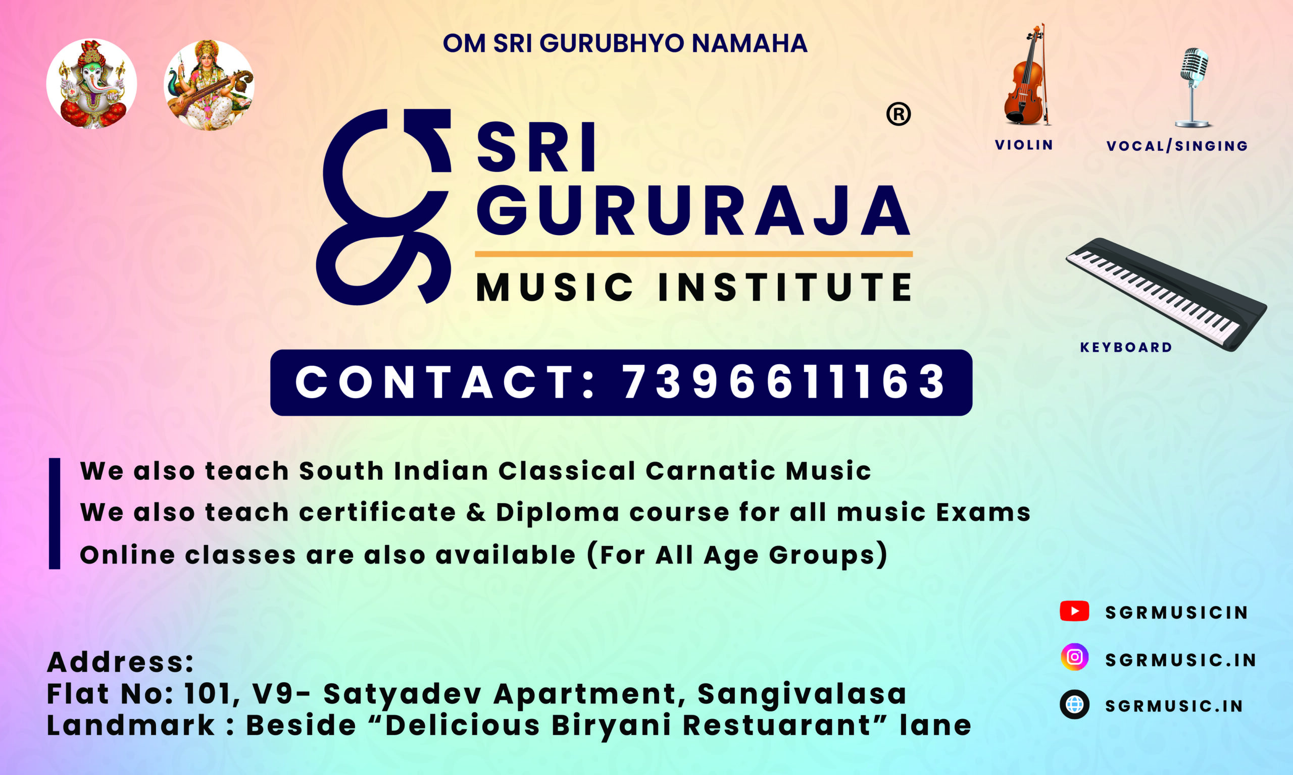 Best music education for all ages in Carnatic vocals, violin, and keyboard at our institute (Online & Offline Available)